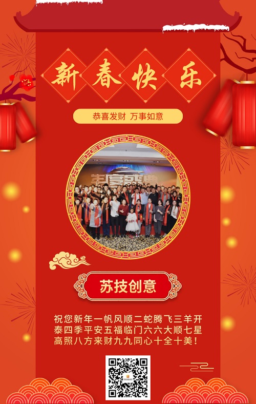 蘇技創(chuàng)意裝飾全體員工祝大家新年快樂!萬事如意!恭喜發(fā)財!