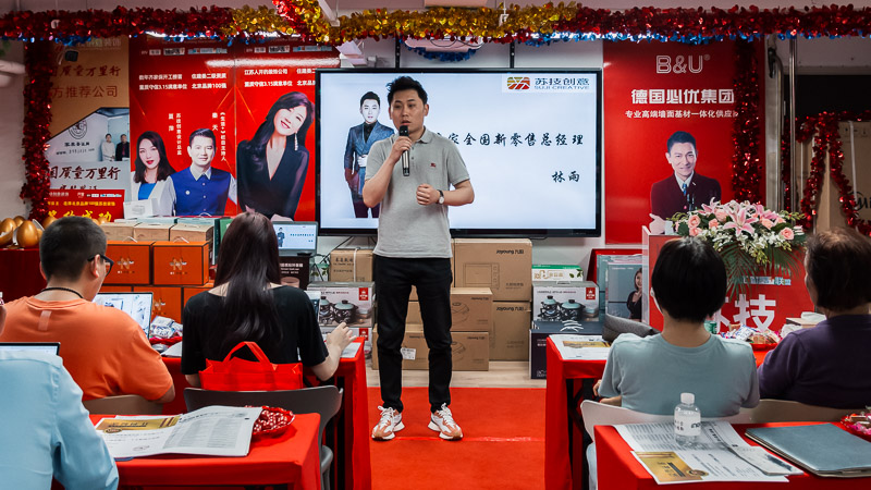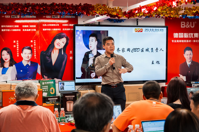 齊家網(wǎng)全國新零售總經(jīng)理林雨先生嘉賓致辭。他說:“蘇技創(chuàng)意裝飾的工地是最讓齊家網(wǎng)放心的工地,推及北京乃至全國都是過硬的齊家網(wǎng)樣板工地”,“與其他把精力放在做廣告玩運營做推廣的同行不同,蘇技創(chuàng)意裝飾顯得土里土氣,只會把精力放在做好裝修上”,“這樣的裝飾公司雖然外表不華麗,卻讓齊家網(wǎng)感到合作起來最放心!”
