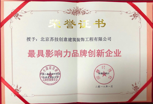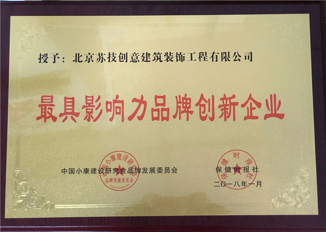 蘇技創(chuàng)意裝飾公司榮獲最具影響力品牌創(chuàng)新企業(yè)榮譽(yù)。